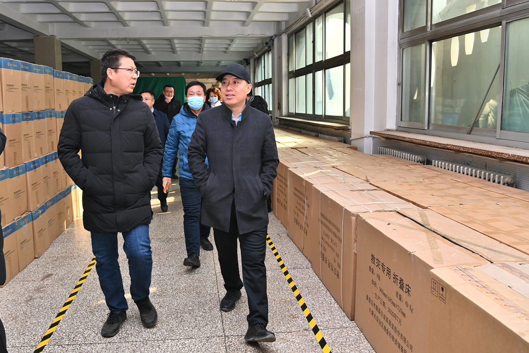 在两校区物资储备库,校领导查看医疗物资、消杀物资、生活物资、应急物资,要求相关工作组按要求足额配备各类物资,同时做好应急物资回收处置,避免资源浪费。