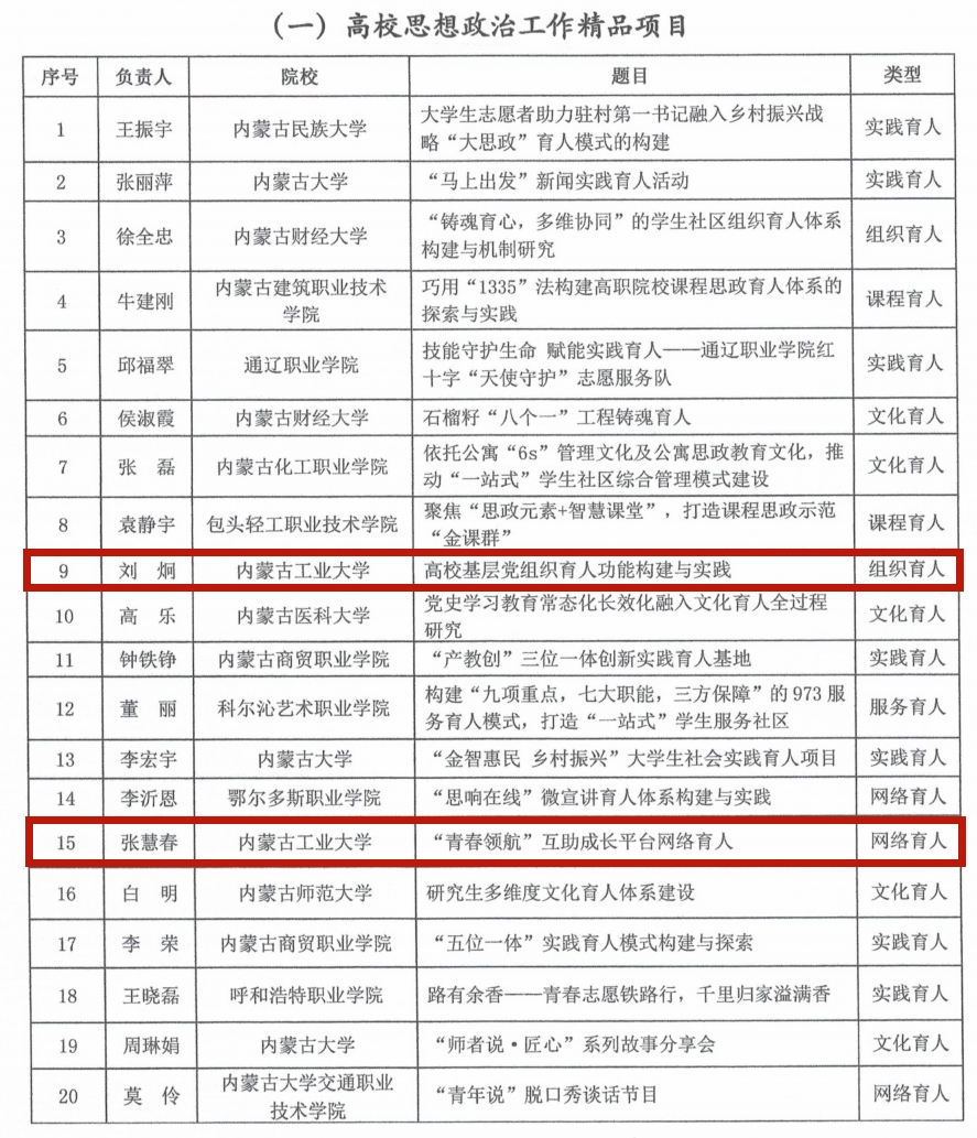 近日,自治区教育厅公布2023年度全区高校思想政治工作项目评选结果,由pg娱乐党委组织部刘炯老师主持的《高校基层党组织育人功能构建与实践》、党委学生工作部张慧春老师主持的《“青春领航”互助成长平台网络育人》获评高校思想政治工作精品项目。此外,pg娱乐获评全区高校心理健康教育与咨询示范中心项目以及全区高校思政工作委托课题2项。