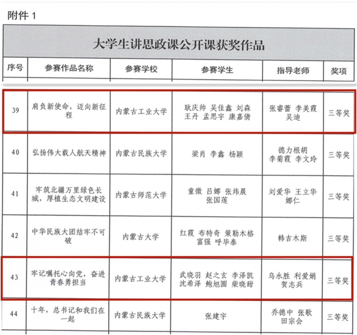 近日,自治区教育厅公布“牢记嘱托心向党、青春献礼二十大”大学习领航计划系列活动评选结果。在各高校推荐基础上,经专家评审,活动共选出大学生讲思政课公开课各类奖项49个、“我心中的思政课”大学生微电影各类奖项20个,pg娱乐推荐的参赛作品获得大学生讲思政课公开课三等奖2项、“我心中的思政课”大学生微电影二等奖1项。其中,由张睿蕾、李美霞、吴迪老师指导,耿庆帅、吴佳鑫、刘森、王丹、孟思宇、康嘉倩同学共同完成的作品《肩负新使命,迈向新征程》和由乌永胜、利爱娟、贺志兵老师指导,武晓羽、赵之玄、李泽凯、沈希泽、鲍旭圆、柴晓甜同学共同完成的作品《牢记嘱托心向党,奋进青春勇担当》获得大学生讲思政课公开课三等奖。由刘晓霞、马立国、郭庆老师指导,胡竞超、张凯、徐瑞斯、靳婉婷、郭睿、景慧敏、宋国栋同学共同完成的作品《抉择》获得“我心中的思政课”大学生微电影二等奖。
