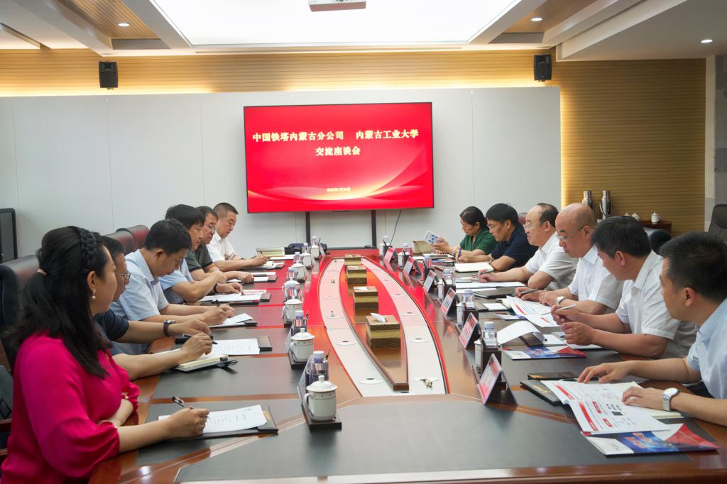 7月20日,中国铁塔股份有限公司内蒙古自治区分公司一行7人来校交流座谈。校党委书记李占峰、副校长王利明出席座谈,招生就业处、国内合作交流处等相关职能部门负责人参加。