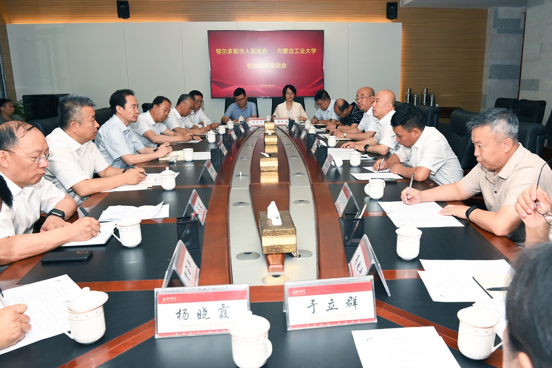 7月17日,鄂尔多斯市市长杜汇良一行7人到校考察座谈。校长郭喜、常务副校长宝音、副校长王利明陪同考察和座谈。教务处、科研处、研究生院、国内合作交流处、招生就业处等职能部门和相关学院负责人参加座谈。