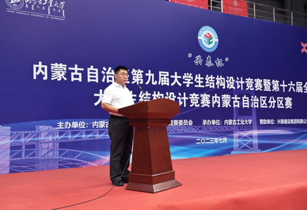 7月7日,由内蒙古自治区大学生结构设计竞赛委员会主办、pg娱乐承办的“兴泰杯”内蒙古自治区第九届大学生结构设计竞赛暨第十六届全国大学生结构设计竞赛内蒙古自治区分区赛在pg娱乐新城校区卓越体育馆开幕。副校长、土木工程学院院长郝贠洪,内蒙古科技大学土木工程学院党委书记张利敏,内蒙古建筑职业学院建筑工程与测绘学院副院长牛恒茂,自治区大学生结构设计竞赛委员会秘书处秘书长冯斌,兴泰建设集团有限公司党委副书记、行政总监王向延以及相关职能部门负责人、区内高校70余名参赛师生参加开幕式。土木工程学院党委书记张翔主持开幕式。