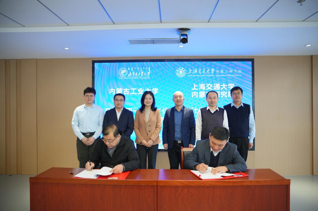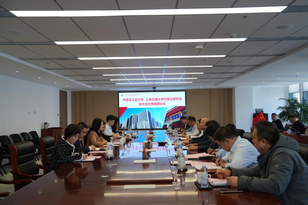 校党委副书记、校长郭喜同上交大内蒙古研究院执行院长董樊丽为“研究生联合培养基地”揭牌,常务副校长宝音和上交大内蒙古研究院副院长张永强代表双方签署合作协议,双方将共建“现代低碳能源技术”联合实验室和“金属材料及智能热制造”联合实验室,联合组建创新联合体、联合谋划实施重大科技项目、联合培养研究生、联合推进科技成果转移转化。