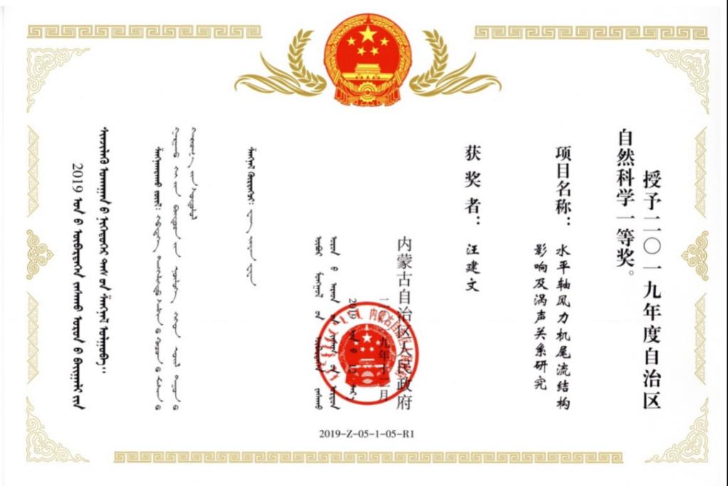 4.围绕风力机特性系列基础研究攻克了适于我国北方特殊气候条件的中小型风电机组设计、制造、检测、认证等系列关键技术,荣获日内瓦国际发明展金奖1项,省部级科学技术一等奖1项、二等奖1项、三等奖3项,奠定了内蒙古中小型风电装备发展的基础。